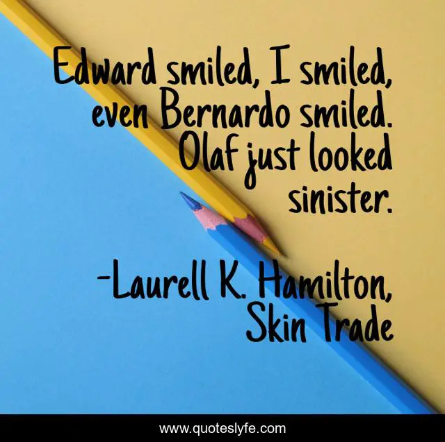 This page presents the quote "Edward smiled, I smiled, even Bernardo smiled. Olaf just looked sinister.". Author of this quote is Laurell K. Hamilton, Skin Trade. This quote is about urban-fantasy, hunter, vampire, fiction, anita-blake, supernatural,.