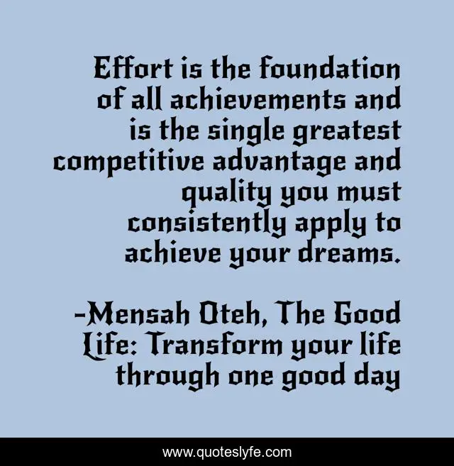 "Mensah Oteh, The Good Life: Transform your life through one good day Quotes." Quoteslyfe.com, 2025. Sat. 06 Dec. 2025. <https://www.quoteslyfe.com/quote/Effort-is-the-foundation-of-all-achievements-15836>.