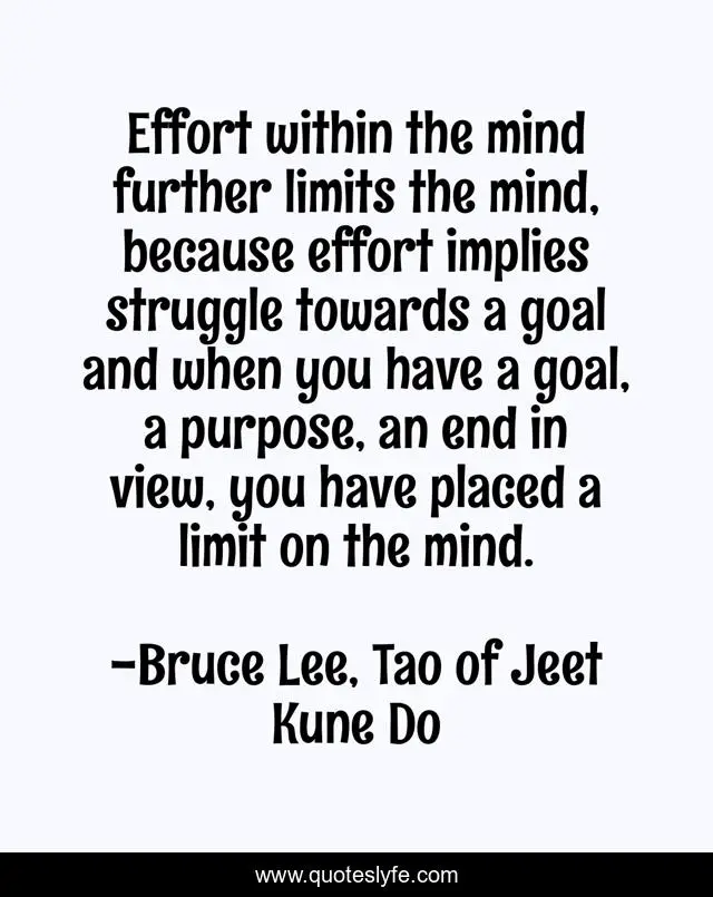 "Bruce Lee, Tao of Jeet Kune Do Quotes." Quoteslyfe.com, 2025. Fri. 05 Dec. 2025. <https://www.quoteslyfe.com/quote/Effort-within-the-mind-further-limits-the-86777>.