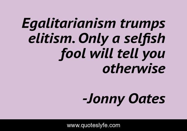 This page presents the quote "Egalitarianism trumps elitism. Only a selfish fool will tell you otherwise". Author of this quote is Jonny Oates. .