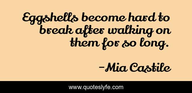 "Mia Castile Quotes." Quoteslyfe.com, 2025. Fri. 05 Dec. 2025. <https://www.quoteslyfe.com/quote/Eggshells-become-hard-to-break-after-walking-182045>.