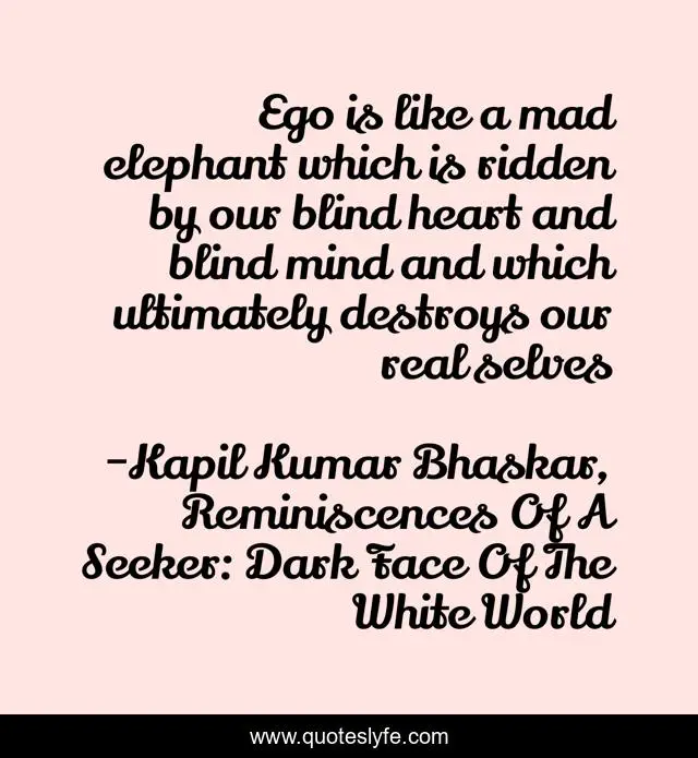 "Kapil Kumar Bhaskar, Reminiscences Of A Seeker: Dark Face Of The White World Quotes." Quoteslyfe.com, 2025. Sat. 06 Dec. 2025. <https://www.quoteslyfe.com/quote/Ego-is-like-a-mad-elephant-which-44322>.