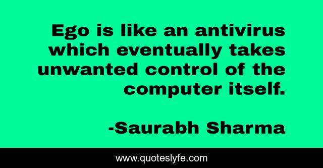 This page presents the quote "Ego is like an antivirus which eventually takes unwanted control of the computer itself.". Author of this quote is Saurabh Sharma. This quote is about ego, mind, psychology, spirituality,.