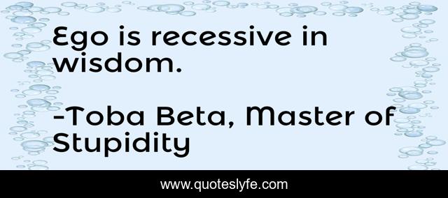 This page presents the quote "Ego is recessive in wisdom.". Author of this quote is Toba Beta, Master of Stupidity. This quote is about recessive, ego, wisdom,.