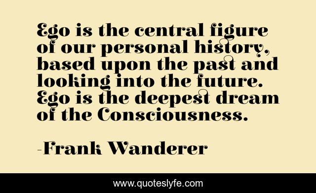 This page presents the quote "Ego is the central figure of our personal history, based upon the past and looking into the future. Ego is the deepest dream of the Consciousness.". Author of this quote is Frank Wanderer. This quote is about personal-history, ego, consciousness,.