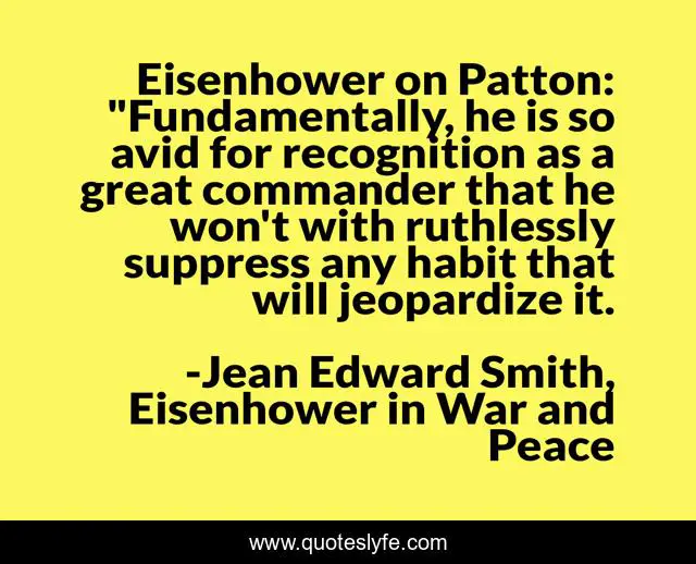 "Jean Edward Smith, Eisenhower in War and Peace Quotes." Quoteslyfe.com, 2025. Mon. 08 Dec. 2025. <https://www.quoteslyfe.com/quote/Eisenhower-on-Patton-Fundamentally-he-is-so-175745>.