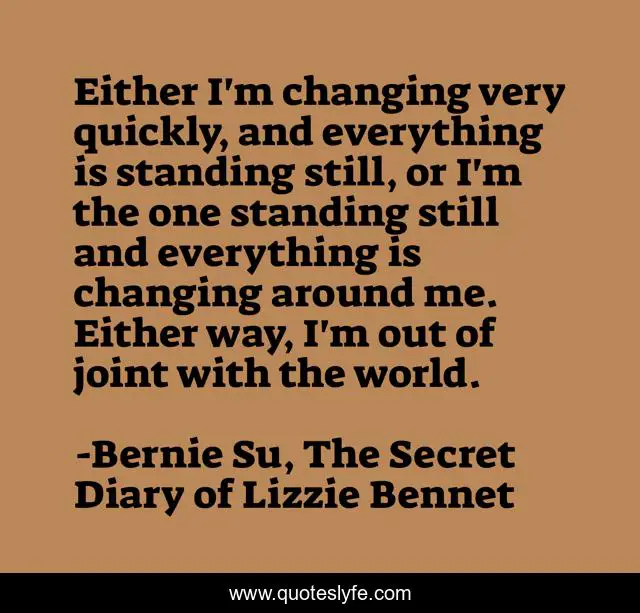 "Bernie Su, The Secret Diary of Lizzie Bennet Quotes." Quoteslyfe.com, 2025. Fri. 05 Dec. 2025. <https://www.quoteslyfe.com/quote/Either-I-m-changing-very-quickly-and-188923>.