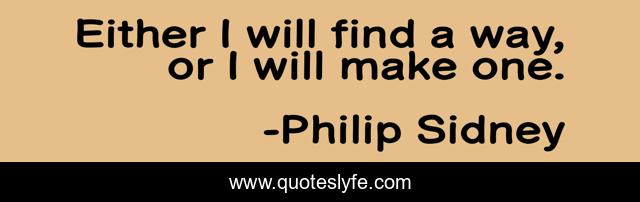 This page presents the quote "Either I will find a way, or I will make one.". Author of this quote is Philip Sidney. This quote is about find, way,.