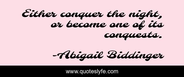 "Abigail Biddinger Quotes." Quoteslyfe.com, 2025. Sat. 06 Dec. 2025. <https://www.quoteslyfe.com/quote/Either-conquer-the-night-or-become-one-150319>.