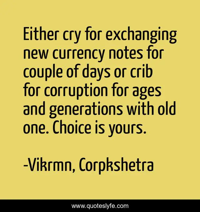 "Vikrmn, Corpkshetra Quotes." Quoteslyfe.com, 2025. Sat. 06 Dec. 2025. <https://www.quoteslyfe.com/quote/Either-cry-for-exchanging-new-currency-notes-37070>.