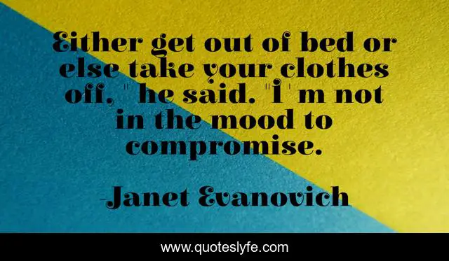 This page presents the quote "Either get out of bed or else take your clothes off, " he said. "I'm not in the mood to compromise.". Author of this quote is Janet Evanovich. This quote is about action, romance, humor,.