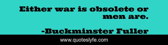 This page presents the quote "Either war is obsolete or men are.". Author of this quote is Buckminster Fuller. .