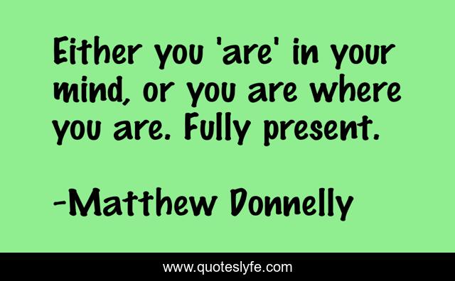 This page presents the quote "Either you 'are' in your mind, or you are where you are. Fully present.". Author of this quote is Matthew Donnelly. This quote is about mindfulness, mind-dominance, presence,.