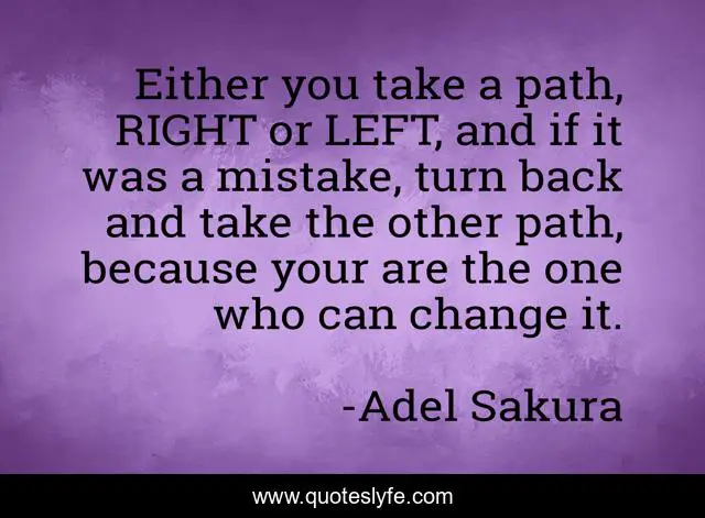 This page presents the quote "Either you take a path, RIGHT or LEFT, and if it was a mistake, turn back and take the other path, because your are the one who can change it.". Author of this quote is Adel Sakura. This quote is about confusion, self-confident, path,.