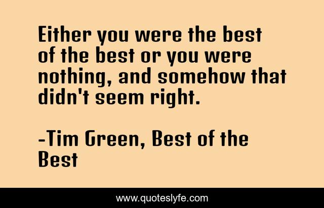 This page presents the quote "Either you were the best of the best or you were nothing, and somehow that didn't seem right.". Author of this quote is Tim Green, Best of the Best. This quote is about best, sports,.