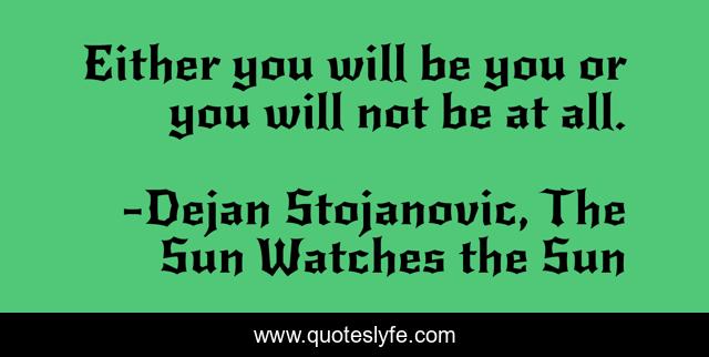 "Dejan Stojanovic, The Sun Watches the Sun Quotes." Quoteslyfe.com, 2025. Mon. 08 Dec. 2025. <https://www.quoteslyfe.com/quote/Either-you-will-be-you-or-you-112394>.
