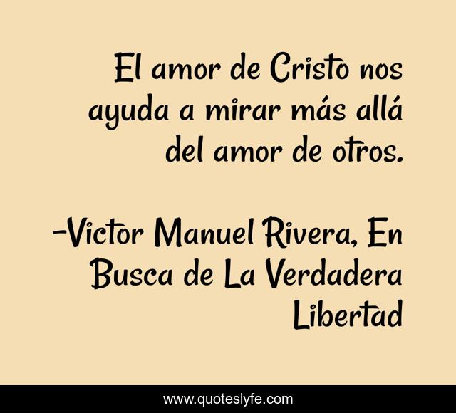 This page presents the quote "El amor de Cristo nos ayuda a mirar más allá del amor de otros.". Author of this quote is Victor Manuel Rivera, En Busca de La Verdadera Libertad. This quote is about religion, leadership, christian-living,.