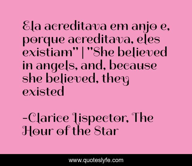 "Clarice Lispector, The Hour of the Star Quotes." Quoteslyfe.com, 2025. Fri. 05 Dec. 2025. <https://www.quoteslyfe.com/quote/Ela-acreditava-em-anjo-e-porque-acreditava-111763>.