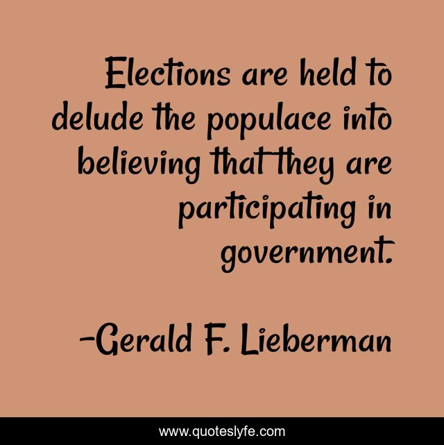 "Gerald F. Lieberman Quotes." Quoteslyfe.com, 2025. Fri. 05 Dec. 2025. <https://www.quoteslyfe.com/quote/Elections-are-held-to-delude-the-populace-321168>.