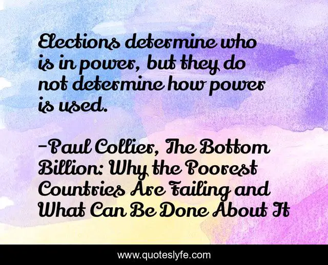 "Paul Collier, The Bottom Billion: Why the Poorest Countries Are Failing and What Can Be Done About It Quotes." Quoteslyfe.com, 2025. Fri. 05 Dec. 2025. <https://www.quoteslyfe.com/quote/Elections-determine-who-is-in-power-but-88205>.