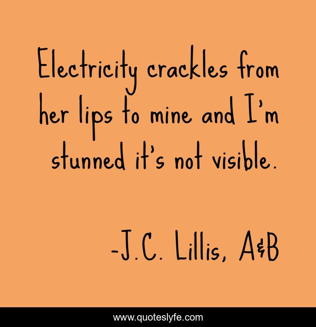 This page presents the quote "Electricity crackles from her lips to mine and I'm stunned it's not visible.". Author of this quote is J.C. Lillis, A&B. .