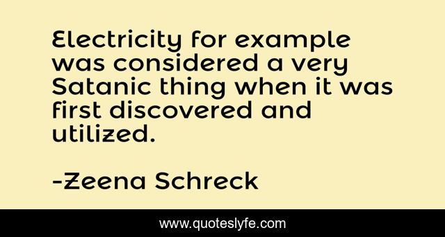 This page presents the quote "Electricity for example was considered a very Satanic thing when it was first discovered and utilized.". Author of this quote is Zeena Schreck. This quote is about electricity, satanism, satan,.