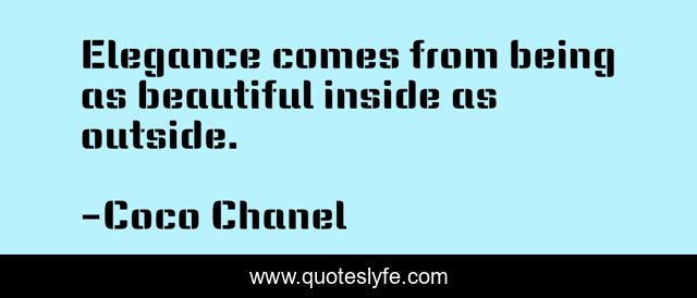 "Coco Chanel Quotes." Quoteslyfe.com, 2025. Sun. 07 Dec. 2025. <https://www.quoteslyfe.com/quote/Elegance-comes-from-being-as-beautiful-inside-234503>.