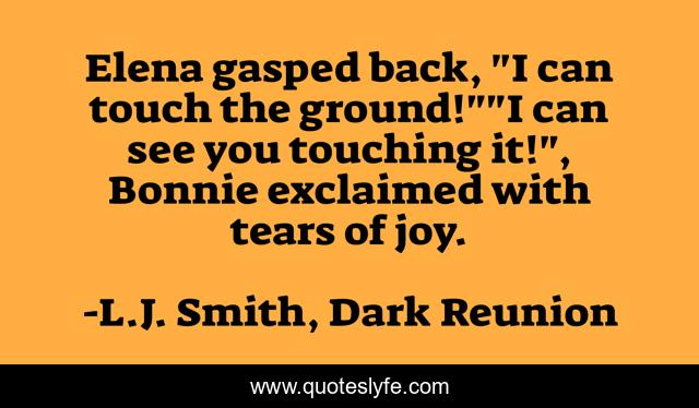 This page presents the quote "Elena gasped back, "I can touch the ground!""I can see you touching it!", Bonnie exclaimed with tears of joy.". Author of this quote is L.J. Smith, Dark Reunion. .