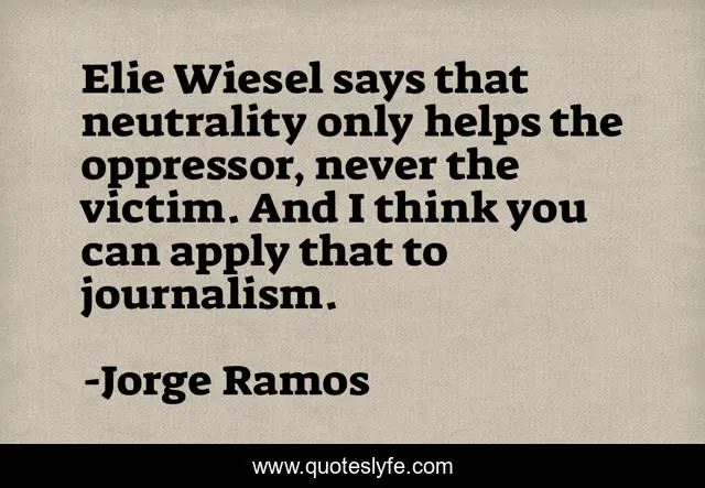 "Jorge Ramos Quotes." Quoteslyfe.com, 2025. Fri. 05 Dec. 2025. <https://www.quoteslyfe.com/quote/Elie-Wiesel-says-that-neutrality-only-helps-254165>.