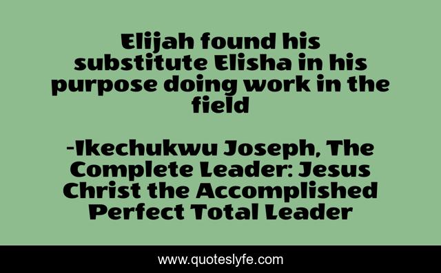 "Ikechukwu Joseph, The Complete Leader: Jesus Christ the Accomplished Perfect Total Leader Quotes." Quoteslyfe.com, 2025. Sat. 06 Dec. 2025. <https://www.quoteslyfe.com/quote/Elijah-found-his-substitute-Elisha-in-his-84839>.