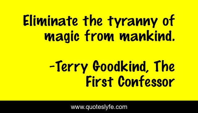 "Terry Goodkind, The First Confessor Quotes." Quoteslyfe.com, 2025. Sat. 06 Dec. 2025. <https://www.quoteslyfe.com/quote/Eliminate-the-tyranny-of-magic-from-mankind-133718>.