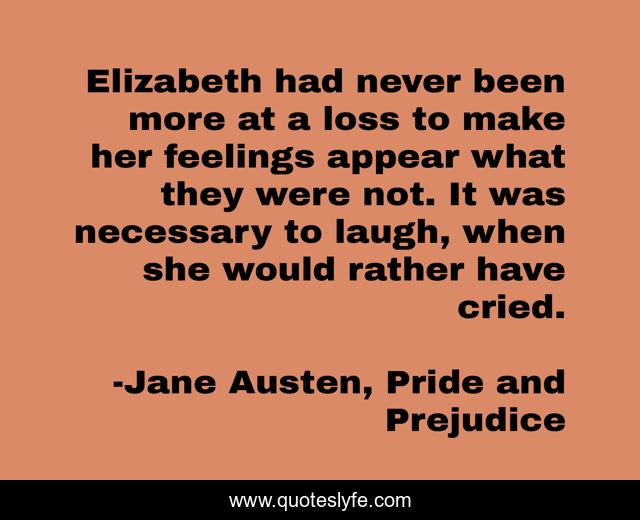 This page presents the quote "Elizabeth had never been more at a loss to make her feelings appear what they were not. It was necessary to laugh, when she would rather have cried.". Author of this quote is Jane Austen, Pride and Prejudice. This quote is about feelings, cry, concealment, laugh, pride-and-prejudice,.