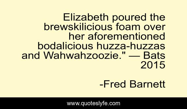 This page presents the quote "Elizabeth poured the brewskilicious foam over her aforementioned bodalicious huzza-huzzas and Wahwahzoozie." — Bats 2015". Author of this quote is Fred Barnett. This quote is about bats, vampires,.