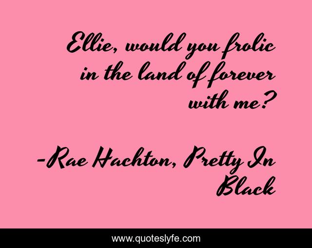 This page presents the quote "Ellie, would you frolic in the land of forever with me?". Author of this quote is Rae Hachton, Pretty In Black. This quote is about forever, marriage-by-death, gothic, immortality, die-for-me,.
