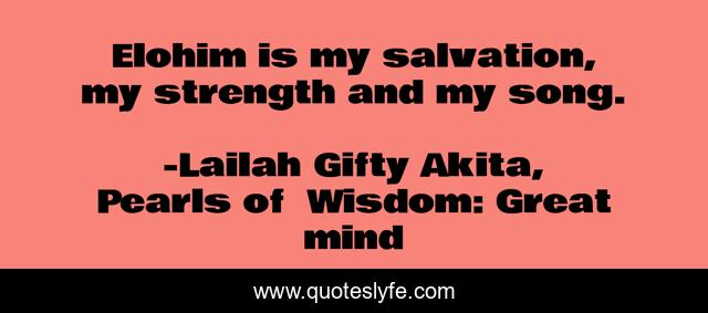 "Lailah Gifty Akita, Pearls of Wisdom: Great mind Quotes." Quoteslyfe.com, 2025. Mon. 08 Dec. 2025. <https://www.quoteslyfe.com/quote/Elohim-is-my-salvation-my-strength-and-121270>.