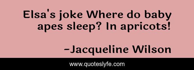 This page presents the quote "Elsa's joke Where do baby apes sleep? In apricots!". Author of this quote is Jacqueline Wilson. .