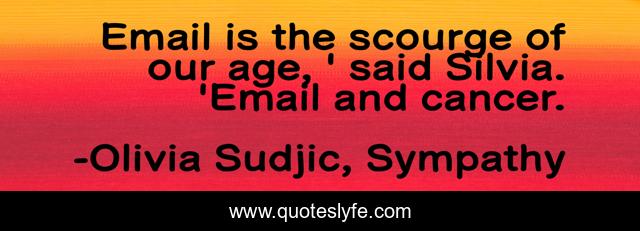 This page presents the quote "Email is the scourge of our age, ' said Silvia. 'Email and cancer.". Author of this quote is Olivia Sudjic, Sympathy. This quote is about humor, information-age, sympathy, olivia-sudjic, technology, email,.