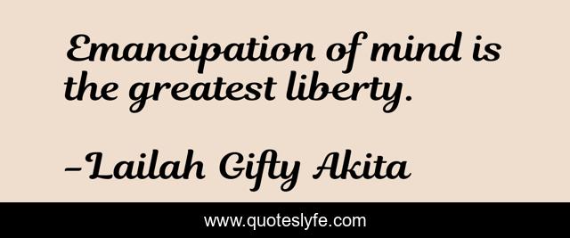 "Lailah Gifty Akita Quotes." Quoteslyfe.com, 2025. Sat. 06 Dec. 2025. <https://www.quoteslyfe.com/quote/Emancipation-of-mind-is-the-greatest-liberty-34128>.