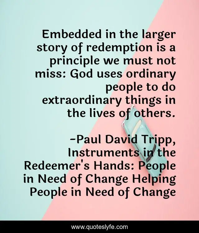 "Paul David Tripp, Instruments in the Redeemer's Hands: People in Need of Change Helping People in Need of Change Quotes." Quoteslyfe.com, 2025. Fri. 05 Dec. 2025. <https://www.quoteslyfe.com/quote/Embedded-in-the-larger-story-of-redemption-11061>.