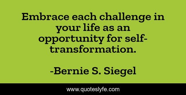 This page presents the quote "Embrace each challenge in your life as an opportunity for self-transformation.". Author of this quote is Bernie S. Siegel. This quote is about challenges, self-transformation, illness,.