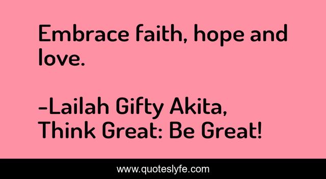 "Lailah Gifty Akita, Think Great: Be Great! Quotes." Quoteslyfe.com, 2025. Sun. 07 Dec. 2025. <https://www.quoteslyfe.com/quote/Embrace-faith-hope-and-love-85292>.