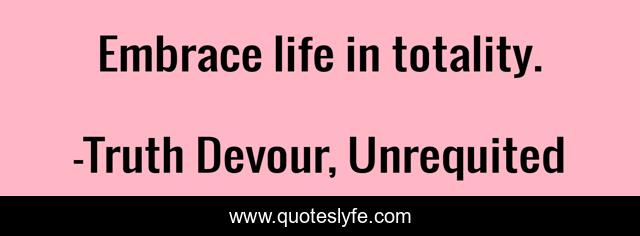 "Truth Devour, Unrequited Quotes." Quoteslyfe.com, 2025. Sun. 07 Dec. 2025. <https://www.quoteslyfe.com/quote/Embrace-life-in-totality-97849>.