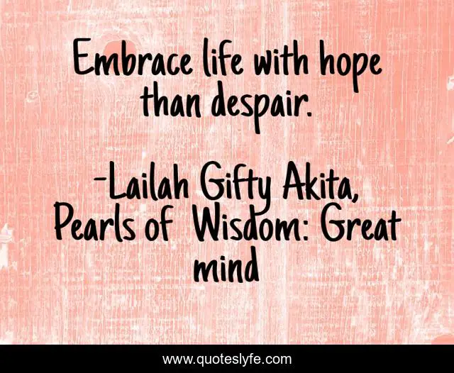 "Lailah Gifty Akita, Pearls of Wisdom: Great mind Quotes." Quoteslyfe.com, 2025. Tue. 09 Dec. 2025. <https://www.quoteslyfe.com/quote/Embrace-life-with-hope-than-despair-76368>.