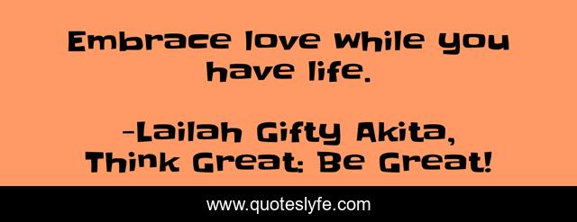 "Lailah Gifty Akita, Think Great: Be Great! Quotes." Quoteslyfe.com, 2025. Sat. 06 Dec. 2025. <https://www.quoteslyfe.com/quote/Embrace-love-while-you-have-life-172892>.