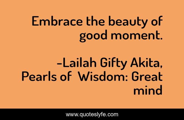 "Lailah Gifty Akita, Pearls of Wisdom: Great mind Quotes." Quoteslyfe.com, 2025. Mon. 08 Dec. 2025. <https://www.quoteslyfe.com/quote/Embrace-the-beauty-of-good-moment-214511>.