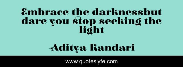 This page presents the quote "Embrace the darknessbut dare you stop seeking the light". Author of this quote is Aditya Kandari. This quote is about light, darkness, inspiration,.