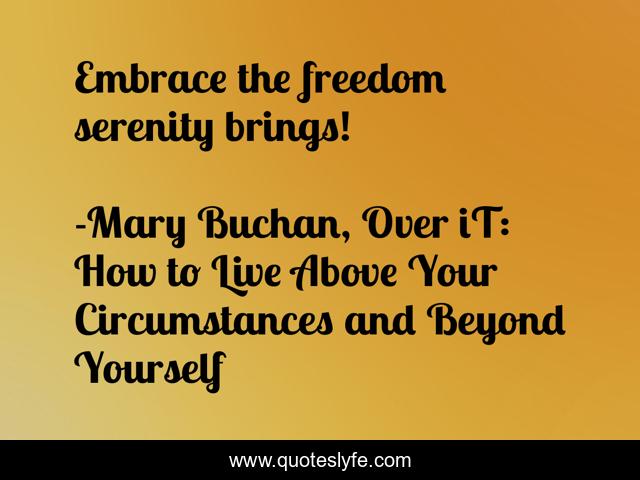 "Mary Buchan, Over iT: How to Live Above Your Circumstances and Beyond Yourself Quotes." Quoteslyfe.com, 2025. Tue. 09 Dec. 2025. <https://www.quoteslyfe.com/quote/Embrace-the-freedom-serenity-brings-178606>.