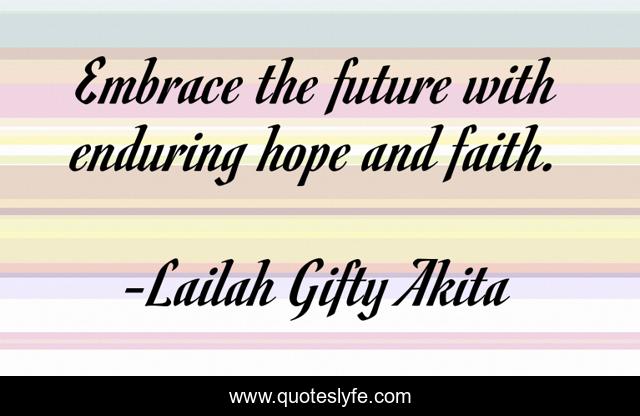 "Lailah Gifty Akita Quotes." Quoteslyfe.com, 2025. Fri. 05 Dec. 2025. <https://www.quoteslyfe.com/quote/Embrace-the-future-with-enduring-hope-and-110207>.