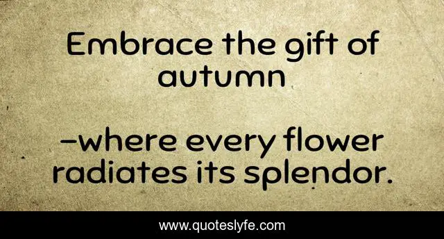 "where every flower radiates its splendor. Quotes." Quoteslyfe.com, 2025. Sat. 06 Dec. 2025. <https://www.quoteslyfe.com/quote/Embrace-the-gift-of-autumn-95153>.