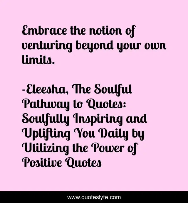 "Eleesha, The Soulful Pathway to Quotes: Soulfully Inspiring and Uplifting You Daily by Utilizing the Power of Positive Quotes Quotes." Quoteslyfe.com, 2025. Fri. 05 Dec. 2025. <https://www.quoteslyfe.com/quote/Embrace-the-notion-of-venturing-beyond-your-205101>.